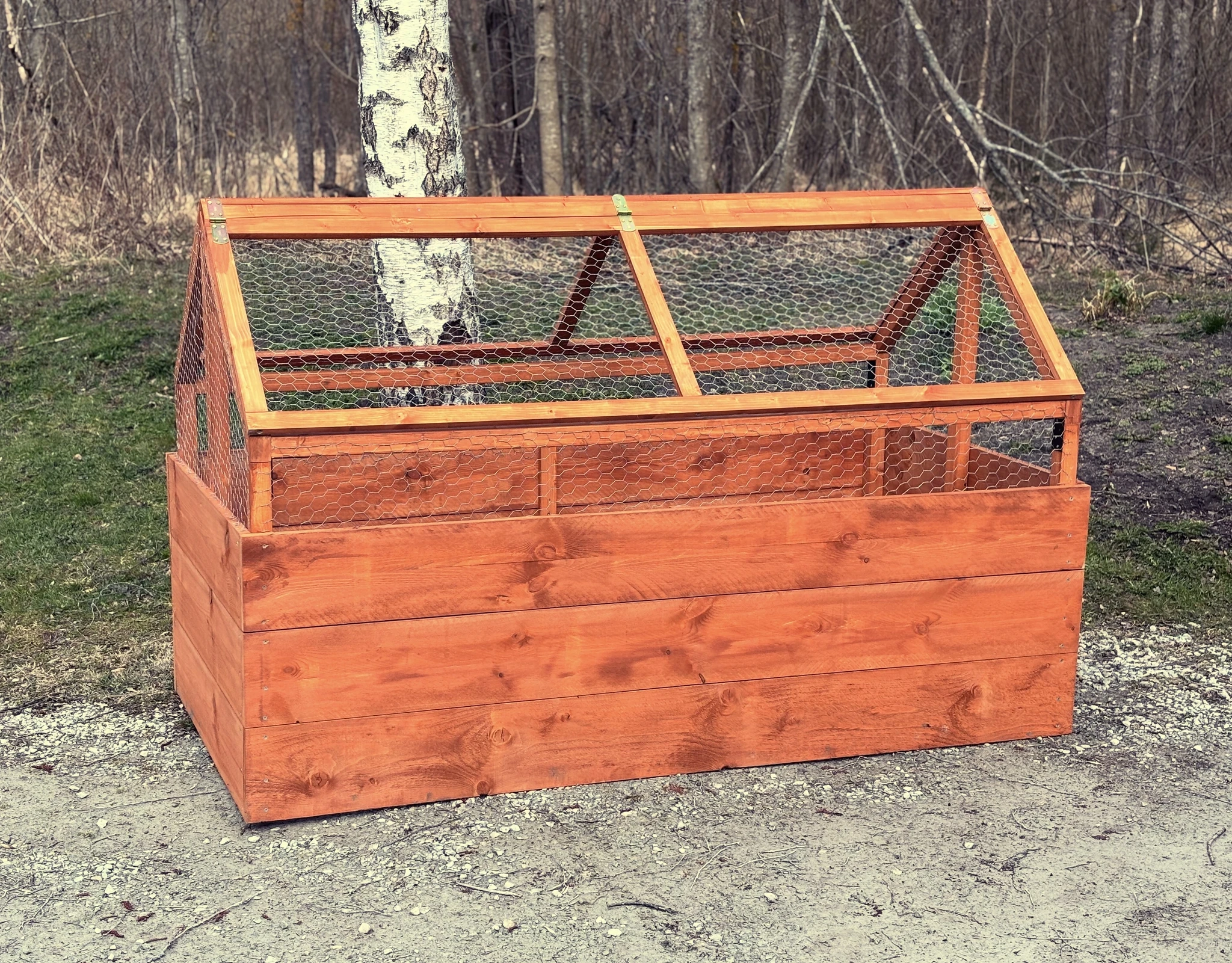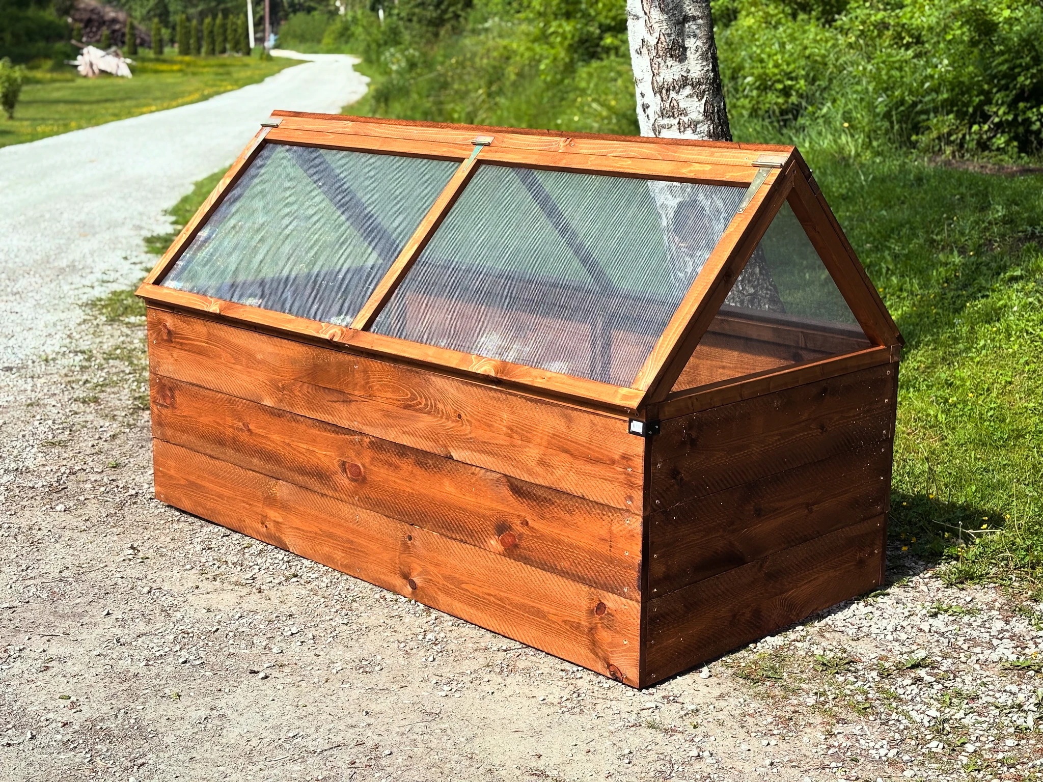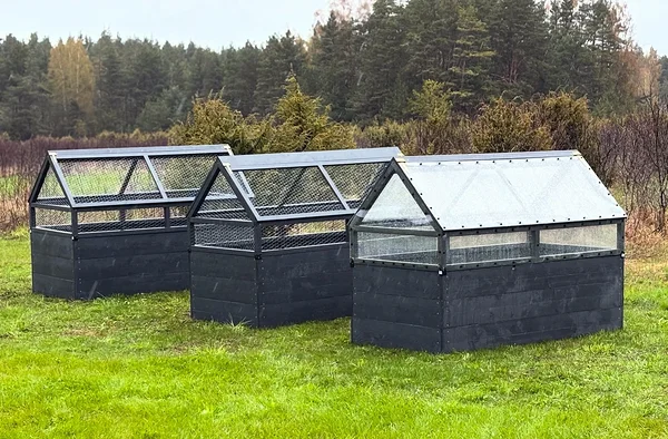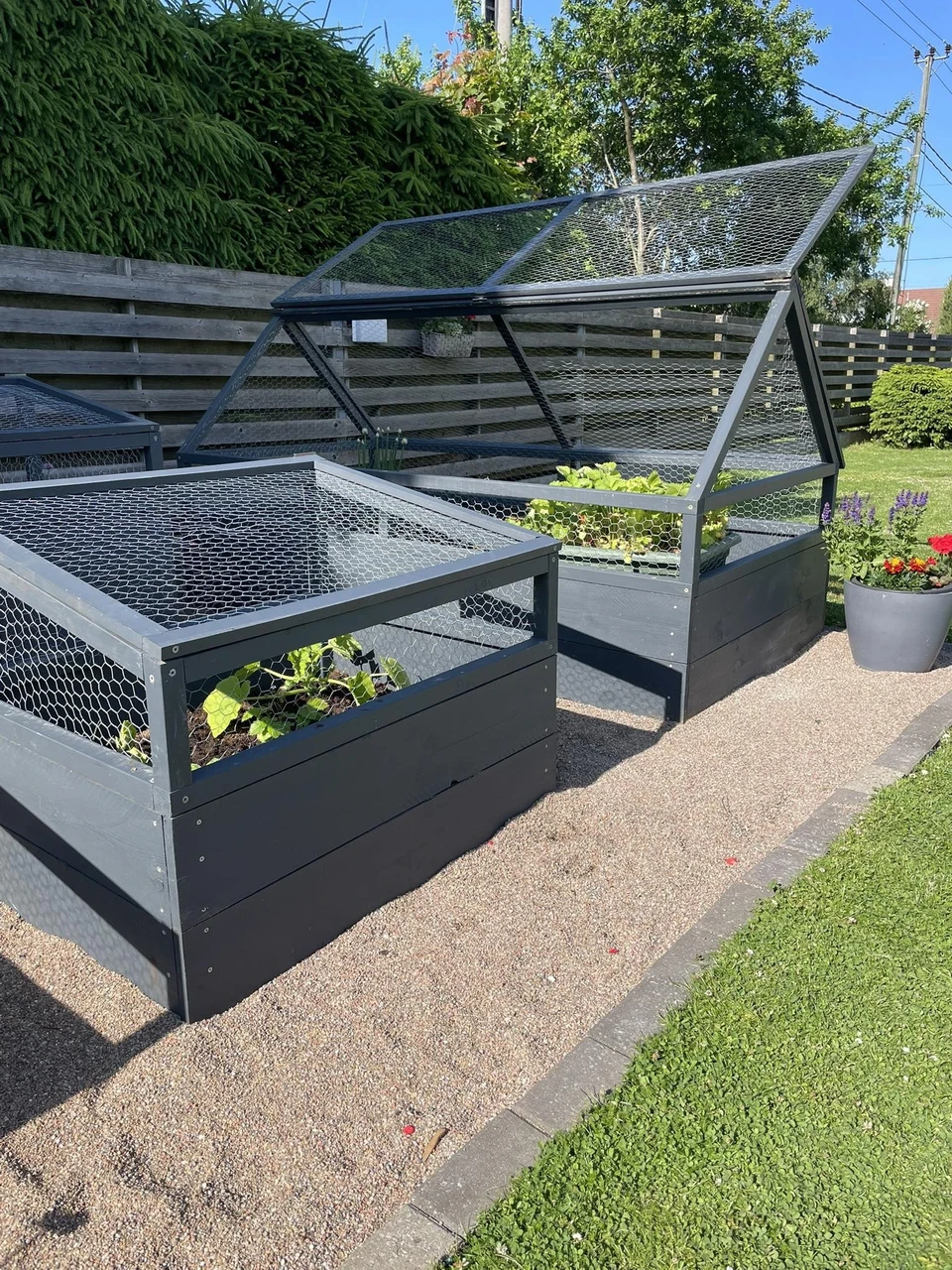 Võrk hingab ja laseb päevavalgust läbi - taimed kasvavad nagu avamaapeenra peal, kuid on nälkjate eest kaitstud.